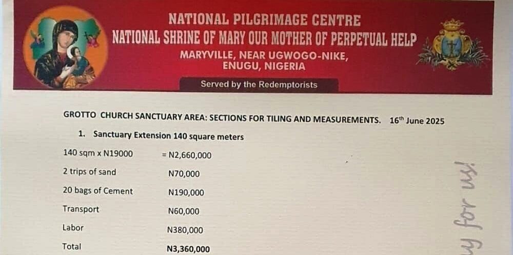Since 2022, millions of naira have been invested into this renovation project, with each supporting pillar costing over ₦130,000. We kindly request your financial support to help us complete the renovation of this church building. Your contribution will allow pilgrims to have the opportunity to visit the Icon of our Mother of Perpetual Help and attend Holy Masses in this sacred space. Your generosity will play a significant role in achieving this important goal.